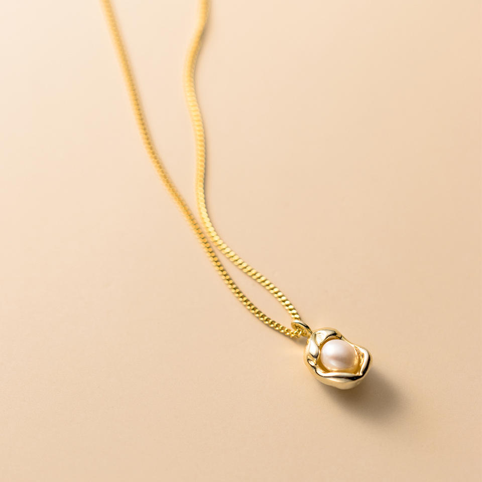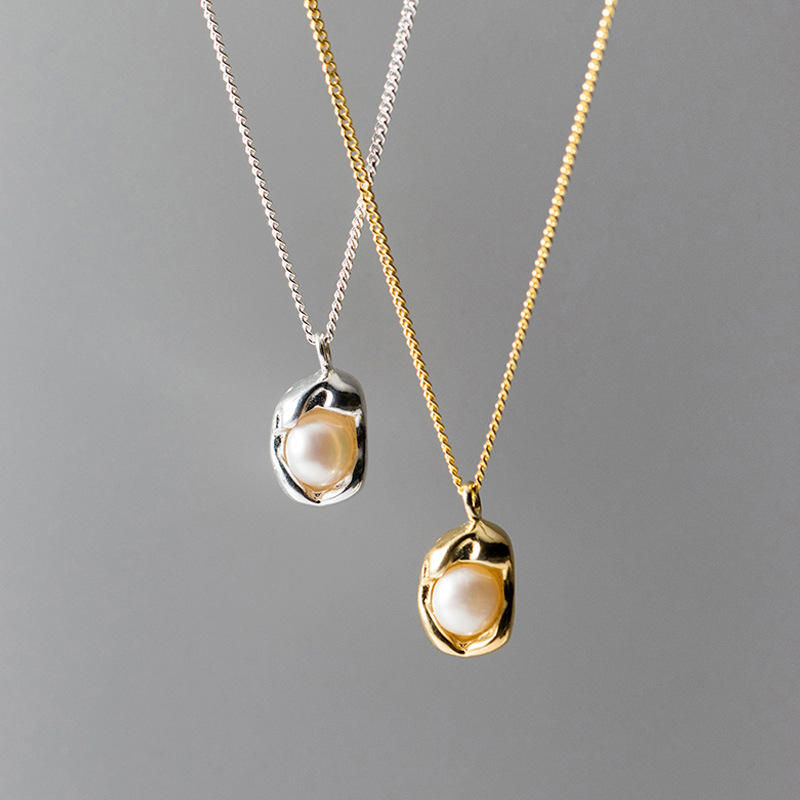 สร้อยคอเงินแท้ S925 พร้อมจี้เปลือกหอยมุกทรงไม่สมมาตร ดีไซน์เก๋ไก๋แบบซ้อนไข่ รุ่น D9229
