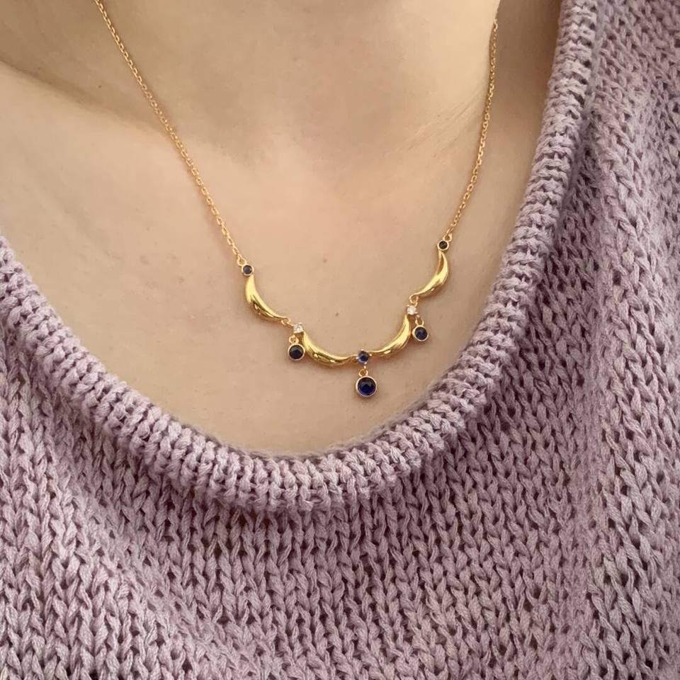สร้อยคอเงินแท้ S925 ประดับเพชรซิคอเนียมทรงดอกไม้สีม่วงประกายระยิบระยับ ดีไซน์รูปไข่พีเจ้น อินเทรนด์