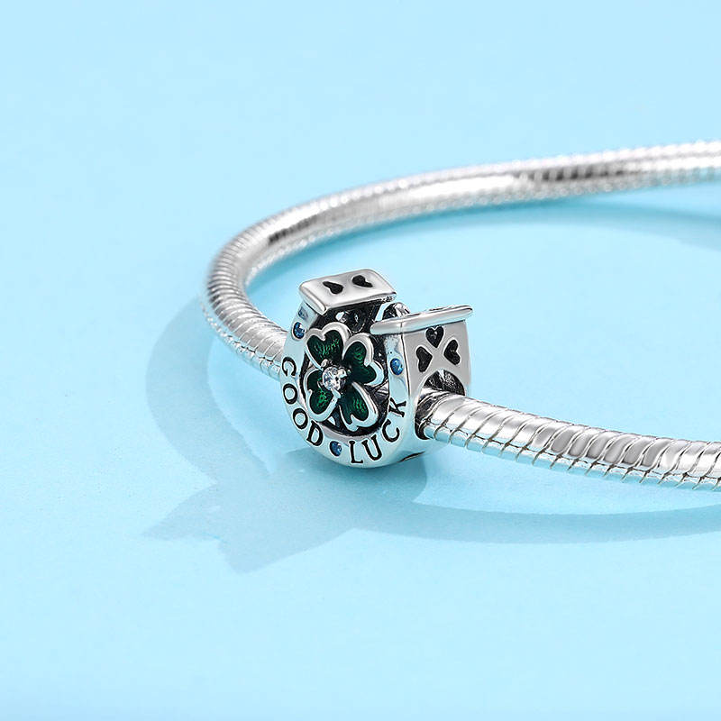 จี้รูปเกือกม้าเงินแท้ S925 เคลือบสีเขียวประดับเพชร CZ สีฟ้า เหมาะสำหรับใส่กับสร้อยข้อมือ เป็นของขวัญสำหรับผู้หญิง