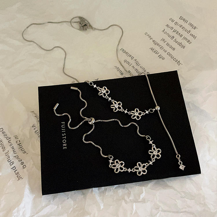 S925เงินสเตอร์ลิงสร้อยข้อมือดอกไม้กลวงสำหรับผู้หญิงการออกแบบทางเรขาคณิตที่เรียบง่ายเครื่องประดับทันสมัยทันสมัยสำหรับหวาน