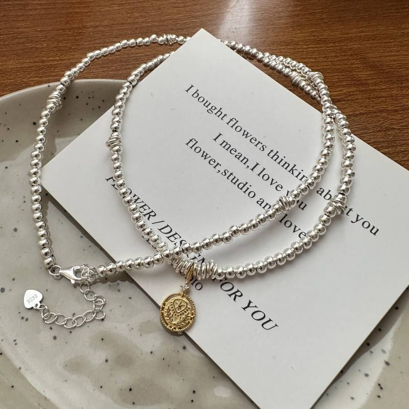 สร้อยคอจี้แฟชั่นสไตล์เกาหลีสีเงินสเตอร์ลิงสำหรับ S925สร้อยคอประดับเหรียญสร้อยคอตัดกับบุคลิกที่โดดเด่น