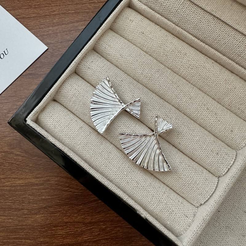 S925 Sterling Silver Korean Style Pleated Wheel Earrings Heavy Texture Fan-Shaped Ear Jewelry Wholesale