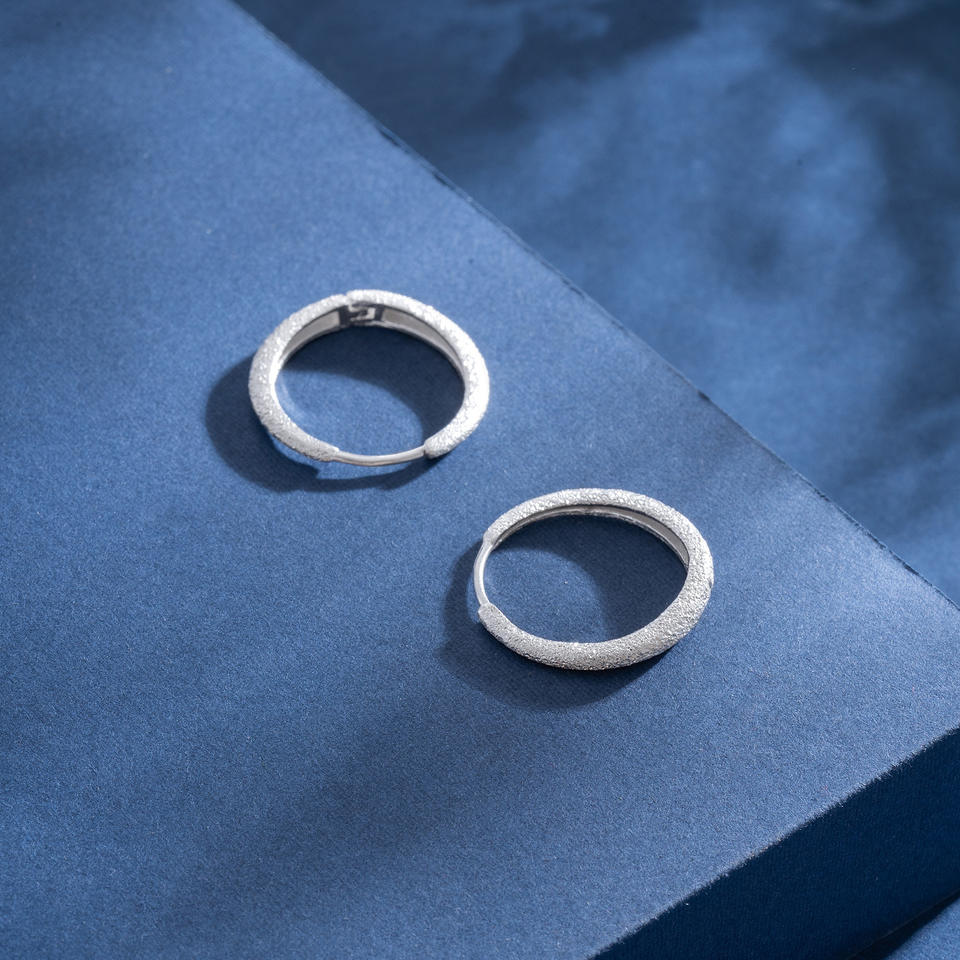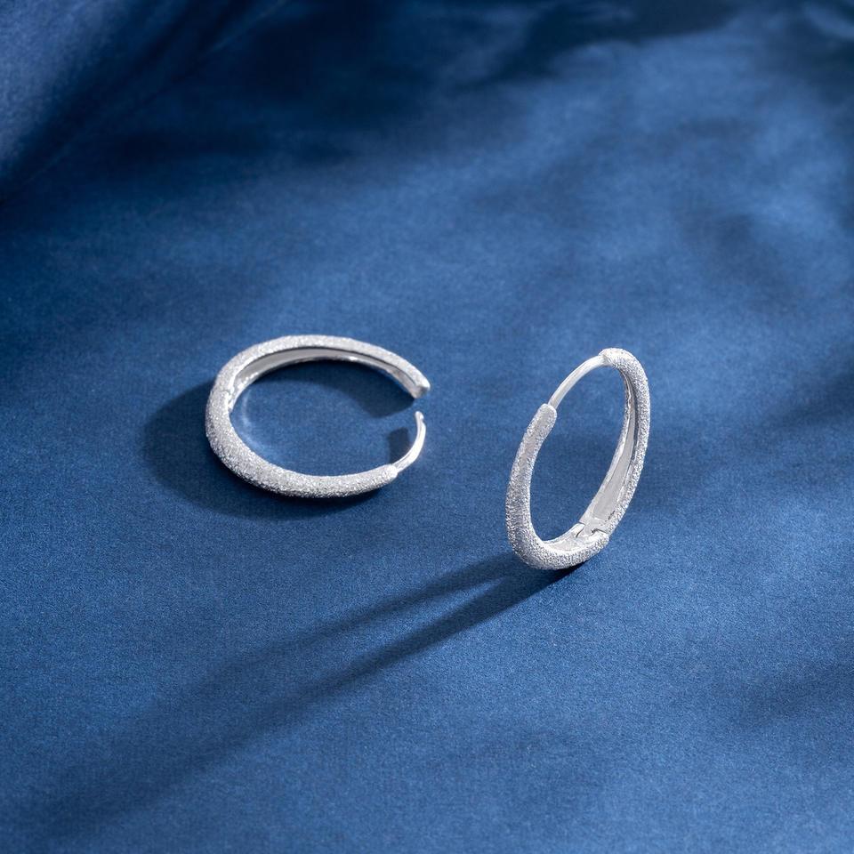S925 Sterling Silver Minimalist Shiny Sandblasted Circle Earrings for Women Star River Matte Earrings