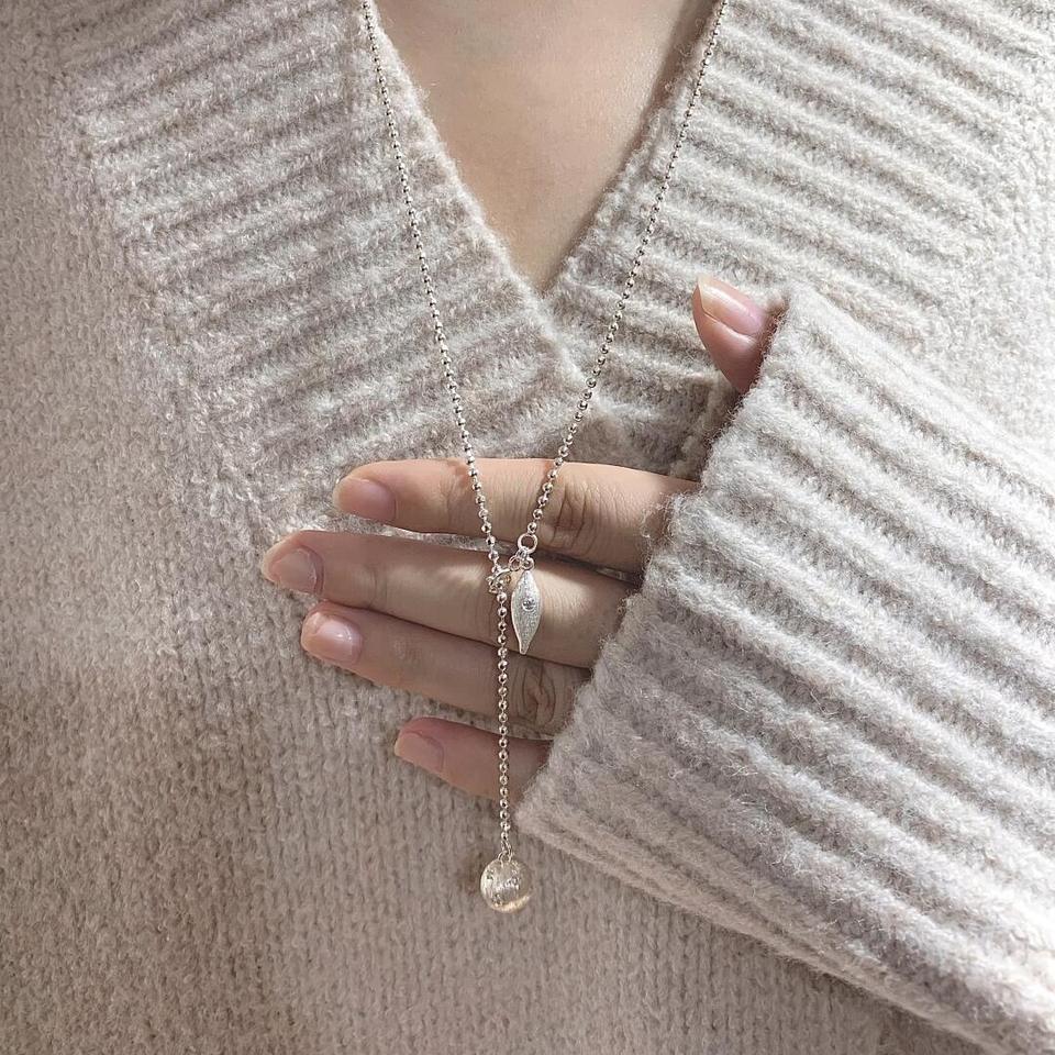 สร้อยคอพู่ประดับลูกปัดเงินแท้ S925 หลายชั้น ดีไซน์เฉพาะตัว ประกายระยิบระยับ