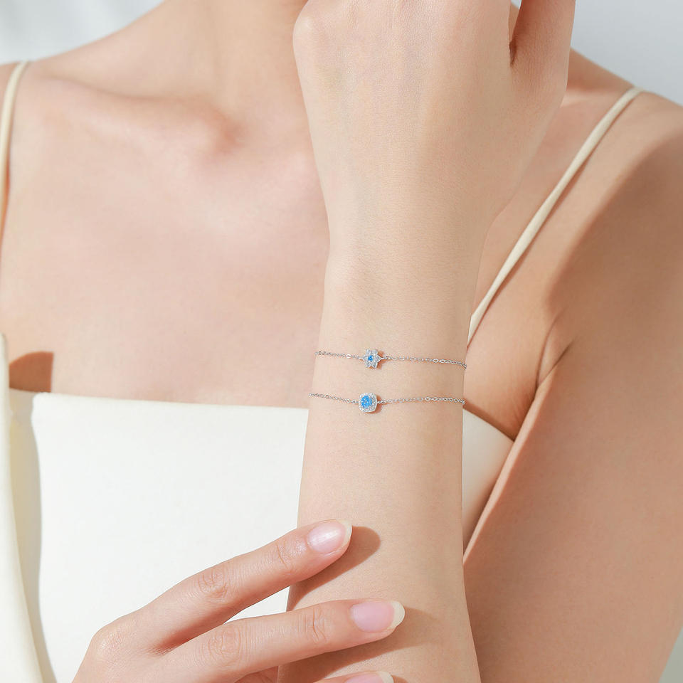 สร้อยข้อมือเงินแท้ S925 ประดับเพทายสีฟ้าโอเชียนบลู สำหรับผู้หญิง แฟชั่นเครื่องประดับสำหรับใช้ในชีวิตประจำวัน รุ่นทองแดงปรับแต่งได้