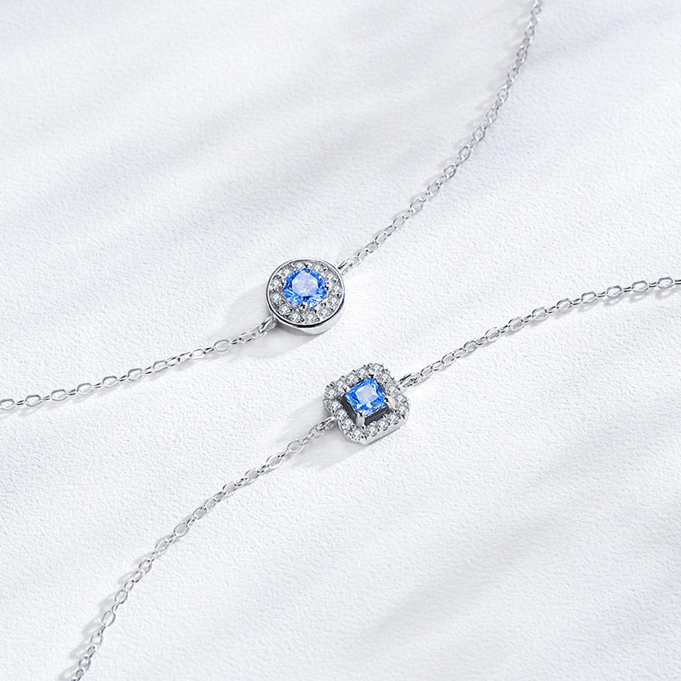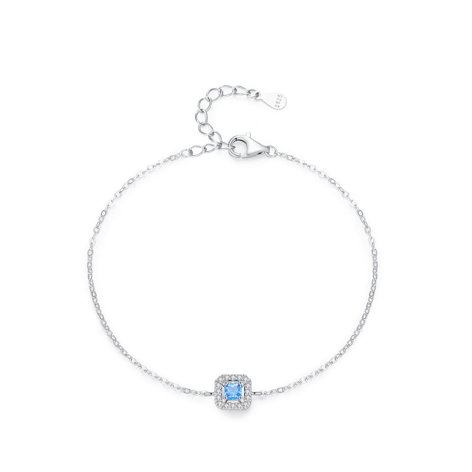 สร้อยข้อมือเงินแท้ S925 ประดับเพทายสีฟ้าทรงสี่เหลี่ยม สำหรับผู้หญิง เครื่องประดับเรียบง่ายสำหรับทุกวัน รุ่นทองแดงปรับแต่งได้
