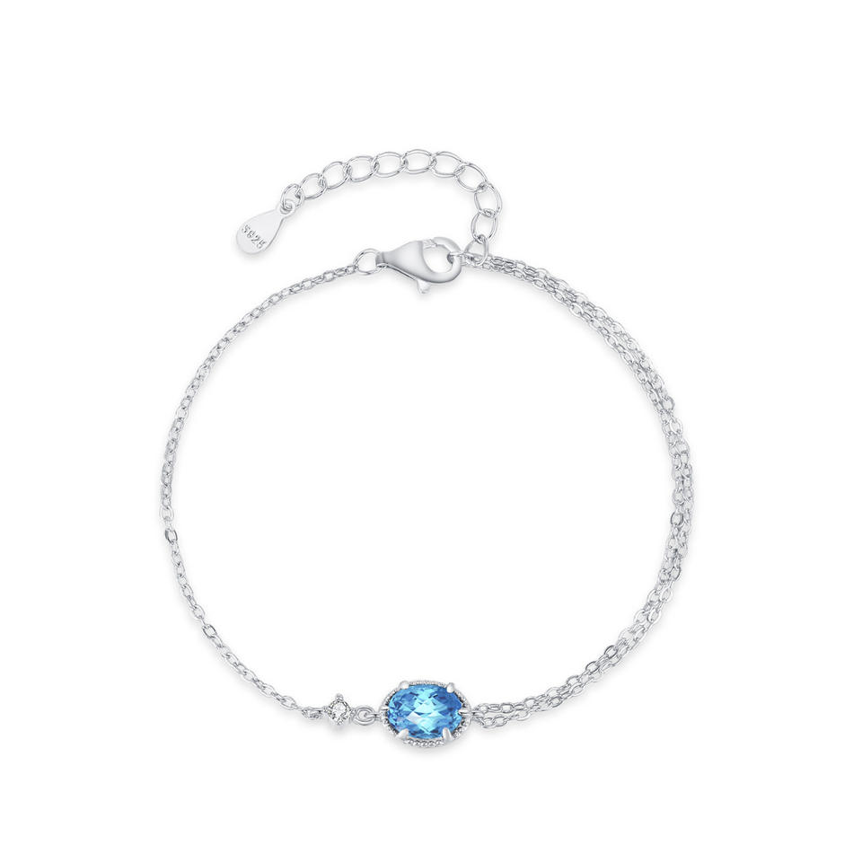 สร้อยข้อมือเงินแท้ S925 ประดับเพทายสีฟ้ารูปไข่สำหรับผู้หญิง - เครื่องประดับแฟชั่นสำหรับทุกวัน รุ่นทองแดงปรับแต่งได้