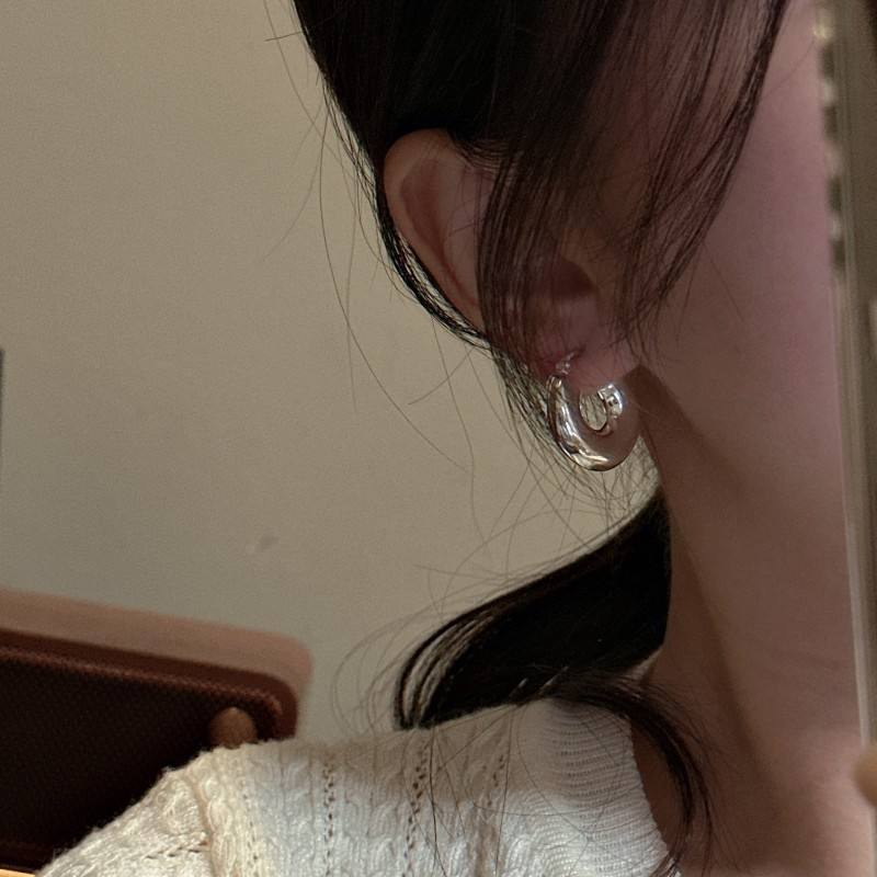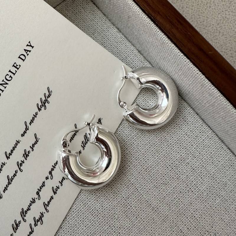 ต่างหูห่วงเงินสเตอริ่งแบบย้อนยุคของ S925เครื่องประดับสไตล์เกาหลีเรียบง่ายคลาสสิกดีไซน์แบบโพรงและสไตล์ย้อนยุคกลวง