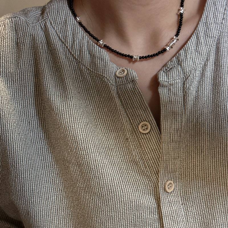 สร้อยคอเงินแท้ย้อนยุคสไตล์อิน S925สไตล์เกาหลีดีไซน์เฉพาะพร้อมโซ่คล้องคอสีเงินสีดำ