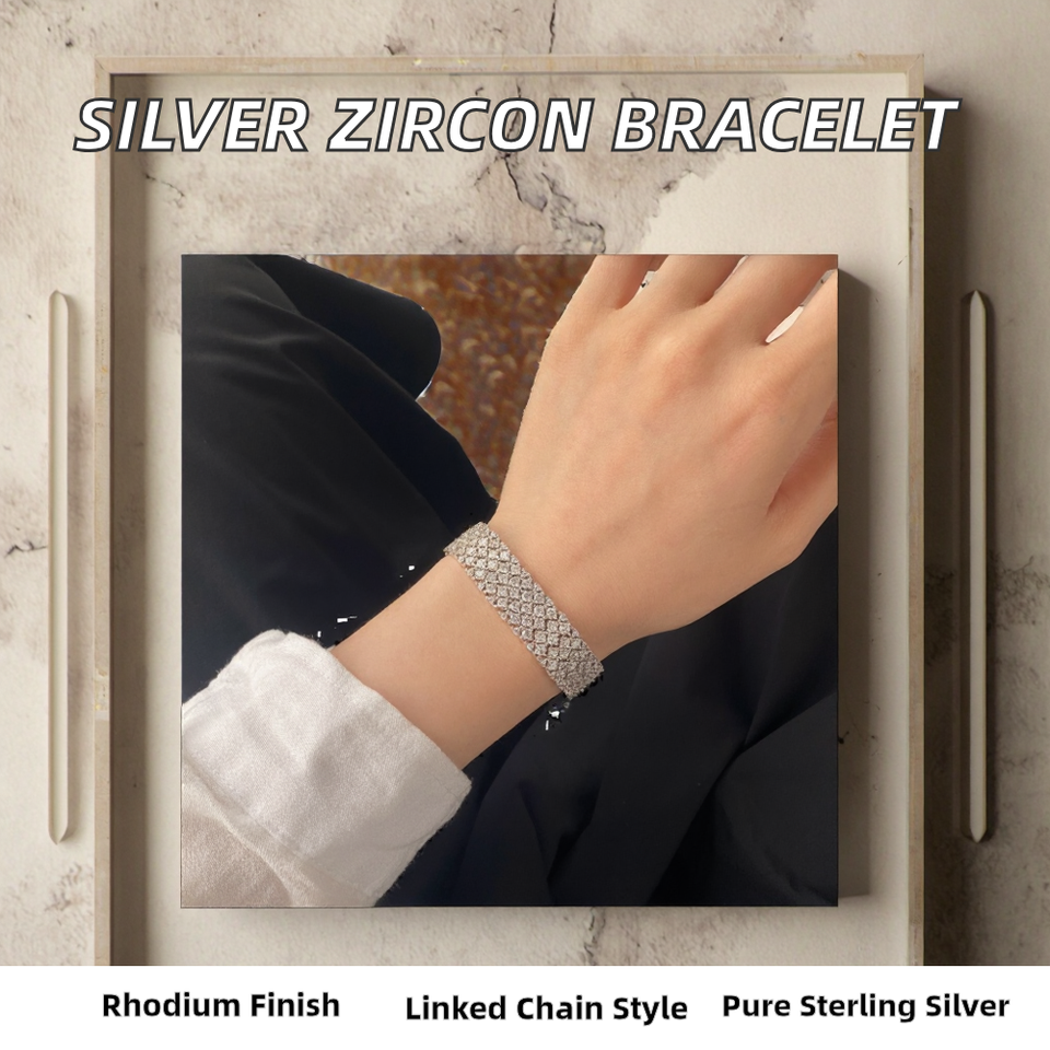 สร้อยข้อมือเงินแท้ S925 ชุบโรเดียม ประดับเพชรซิคอนสีขาว ดีไซน์เก๋ไก๋ทันสมัยสำหรับทุกเพศ สไตล์ยุโรปอเมริกัน ลายเจาะแบบแถว โซ่เส้นเล็ก เหมาะสำหรับเป็นของขวัญในงานปาร์ตี้