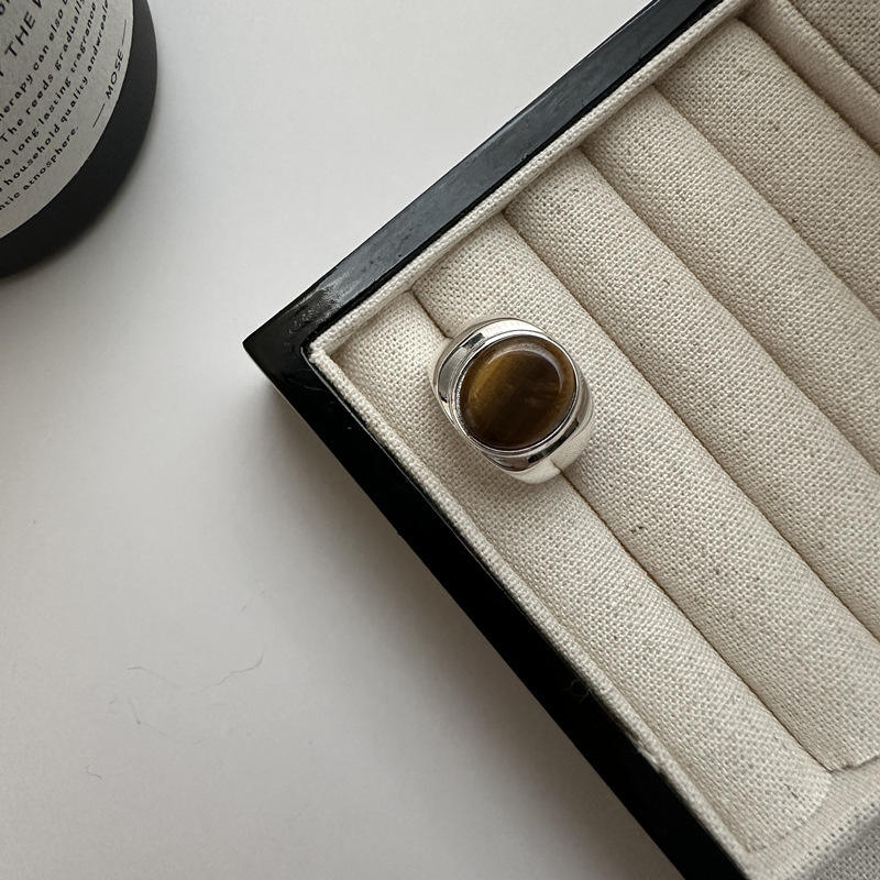 แหวนเงินสเตอร์ลิง S925แหวนหินตาเสือดีไซน์เฉพาะรุ่นเกาหลีสไตล์ลำลองเรียบง่ายพร้อมแหวนแสดงบุคลิกภาพ