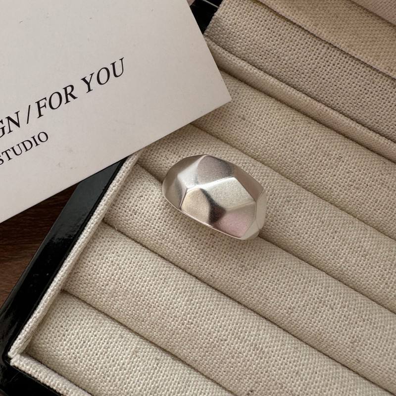แหวนเพชรหลายเหลี่ยมสไตล์เกาหลีโรแมนติกทำจากเงิน S925ออกแบบเฉพาะส่วนเนื้อแฟชั่นและผิวด้าน