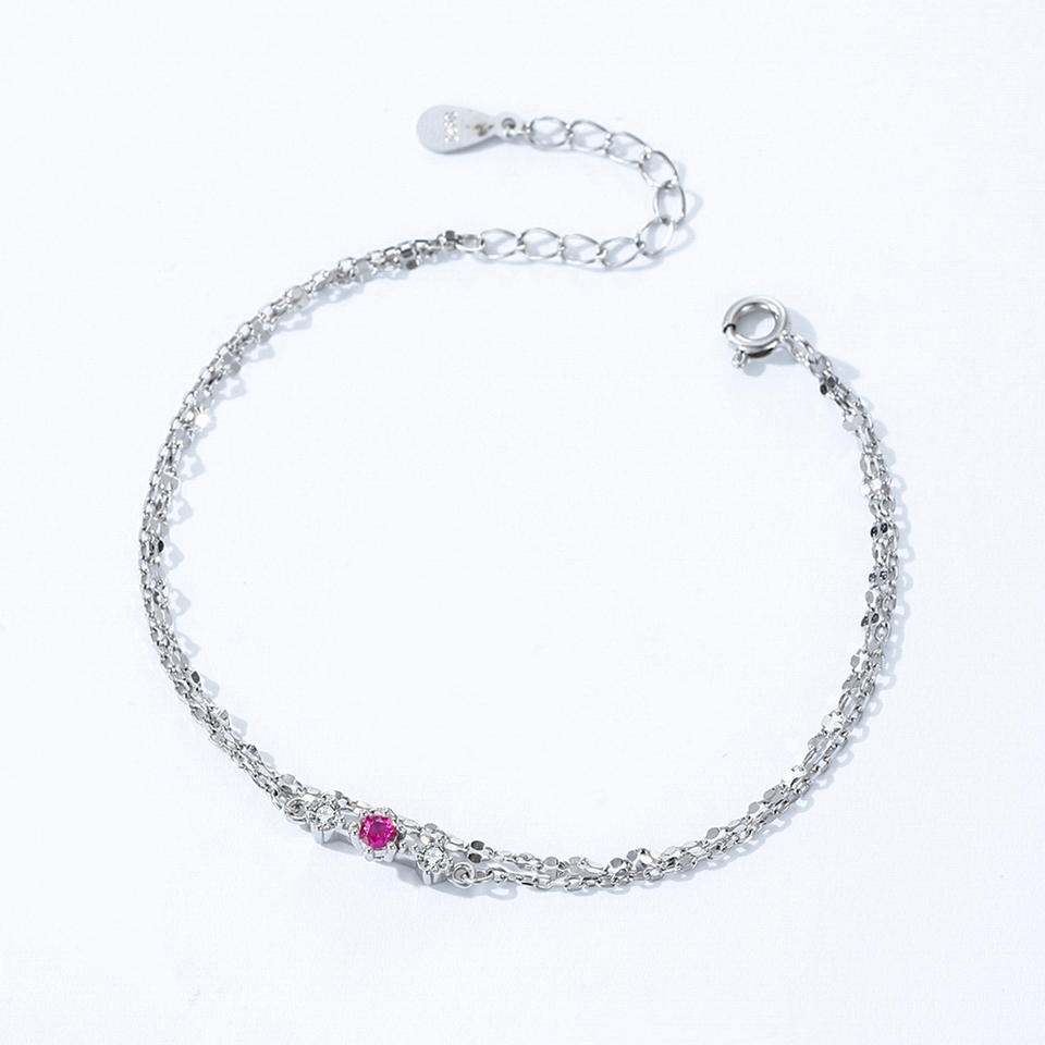 สร้อยข้อมือเงินแท้ S925 ประดับเพทายทรงกลมสีแดงประกายระยิบระยับ ดีไซน์สองสาย สำหรับผู้หญิงโดยเฉพาะ รุ่นทองแดงปรับแต่งได้