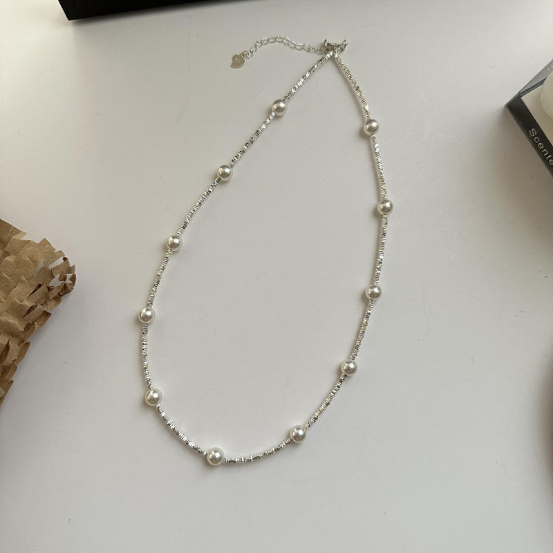 S925เงินแท้ shijiazhu สร้อยคอเงินแบบหักสไตล์ฝรั่งเศสย้อนยุคสง่างามเท่สร้อยคอไข่มุกลูกปัดท้องฟ้าเต็มไปด้วยดวงดาว