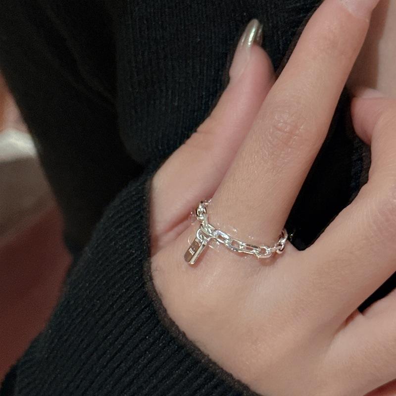 แหวนสี่เหลี่ยมวางซ้อนกันได้สีเงินสเตอร์ลิงแบบเรียบง่าย S925โซ่ดีไซน์แบบญี่ปุ่นและเกาหลีเครื่องประดับขายส่ง