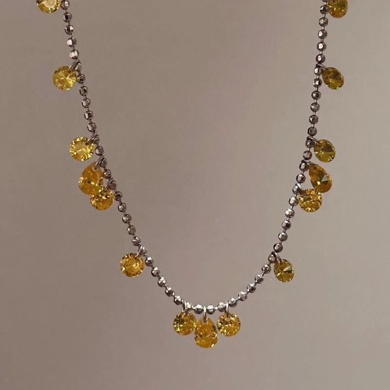 S925 Sterling Silver Sparkling Galaxy Diamond Necklace Fashion Beaded with Irregular Tears and Full Diamonds