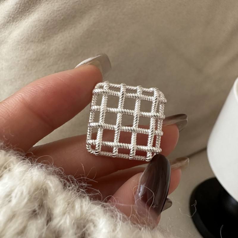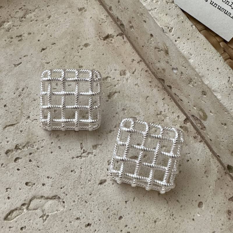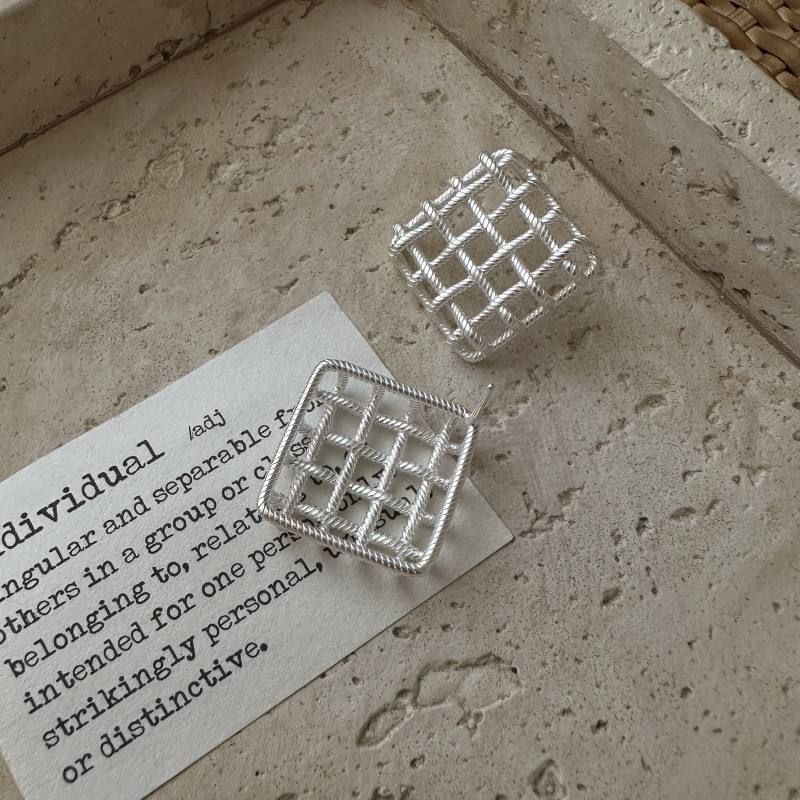 S925 Sterling Silver Square Grid Earrings Korean Style Simple Ear Jewelry Wholesale Niched Design Fashion Jewelry