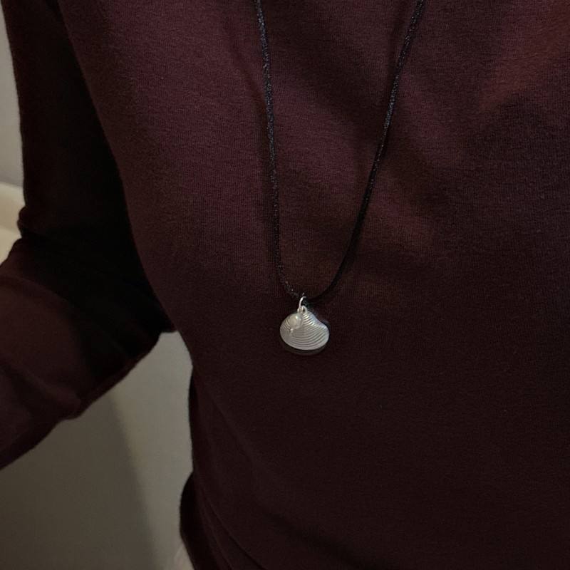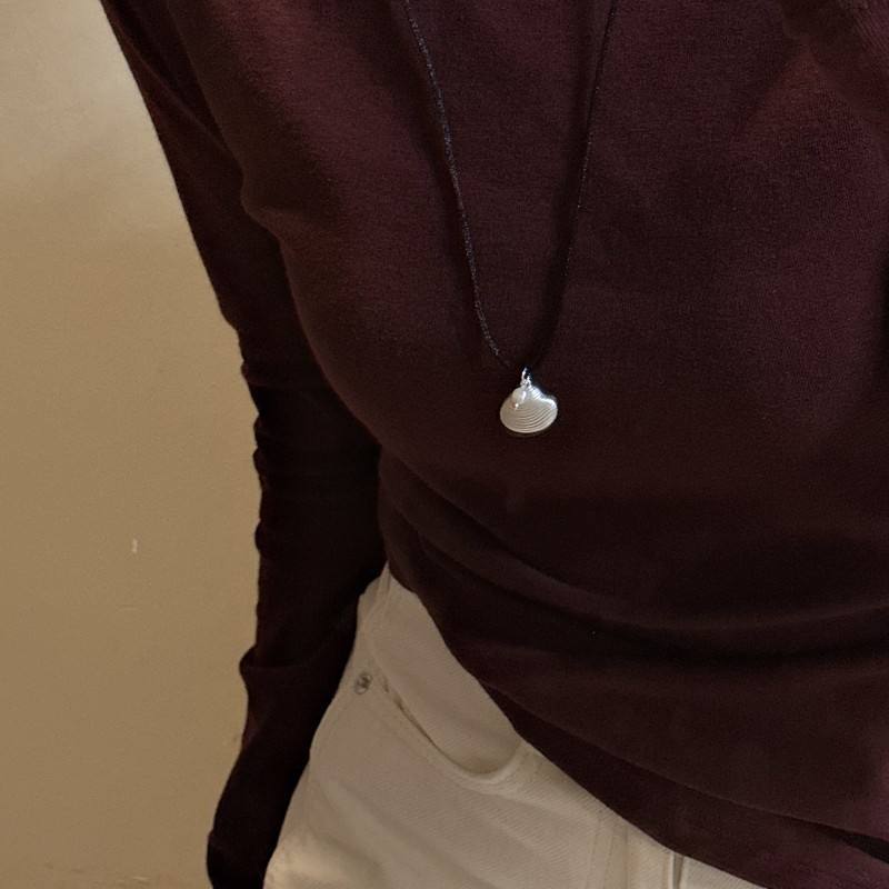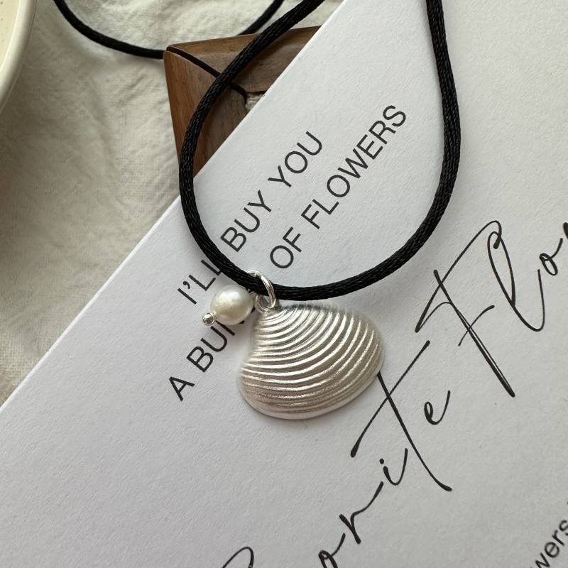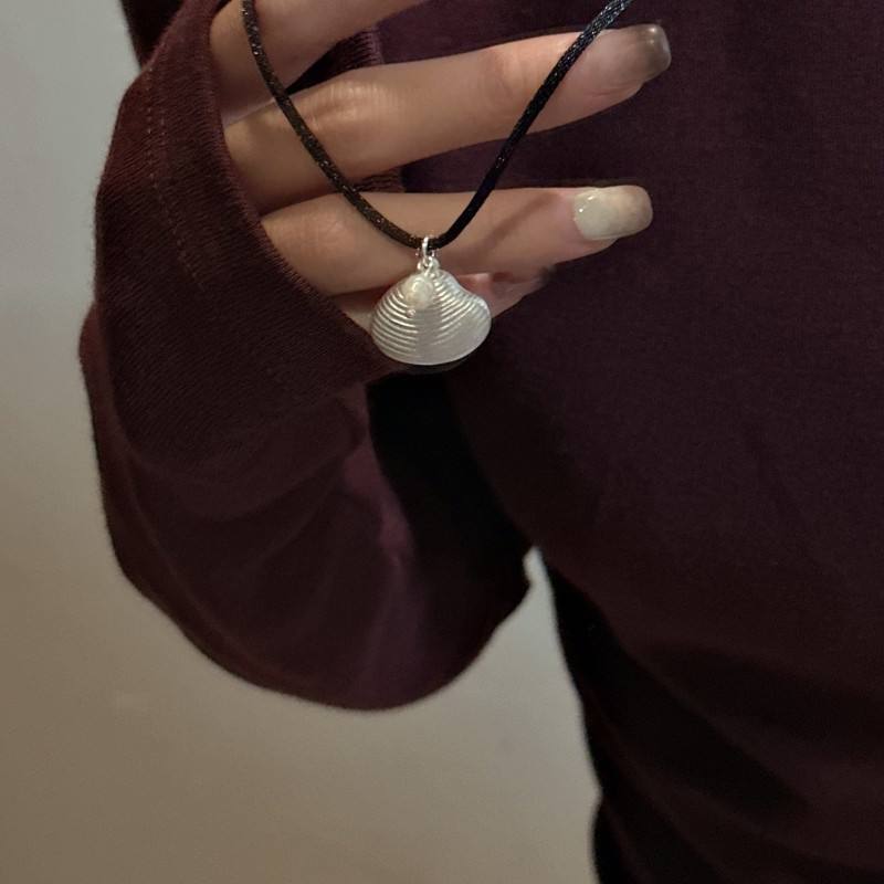 สร้อยคอเงินแท้ S925สไตล์เกาหลีย้อนยุคดีไซน์เฉพาะกลุ่มสีดำเคลือบเงาสร้อยคอพร้อมจี้แบบเรียบง่ายฤดูร้อน