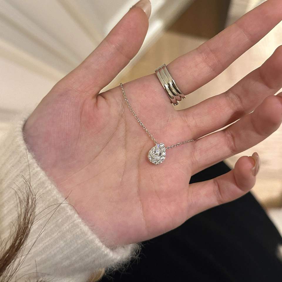 สร้อยคอเงินแท้ S925 รูปหยดน้ำ ประดับพลอยทับทิม ซินนาบาร์ ดีไซน์สีขาวสง่างาม ประดับพลอยไพลิน โดดเด่นสะดุดตา