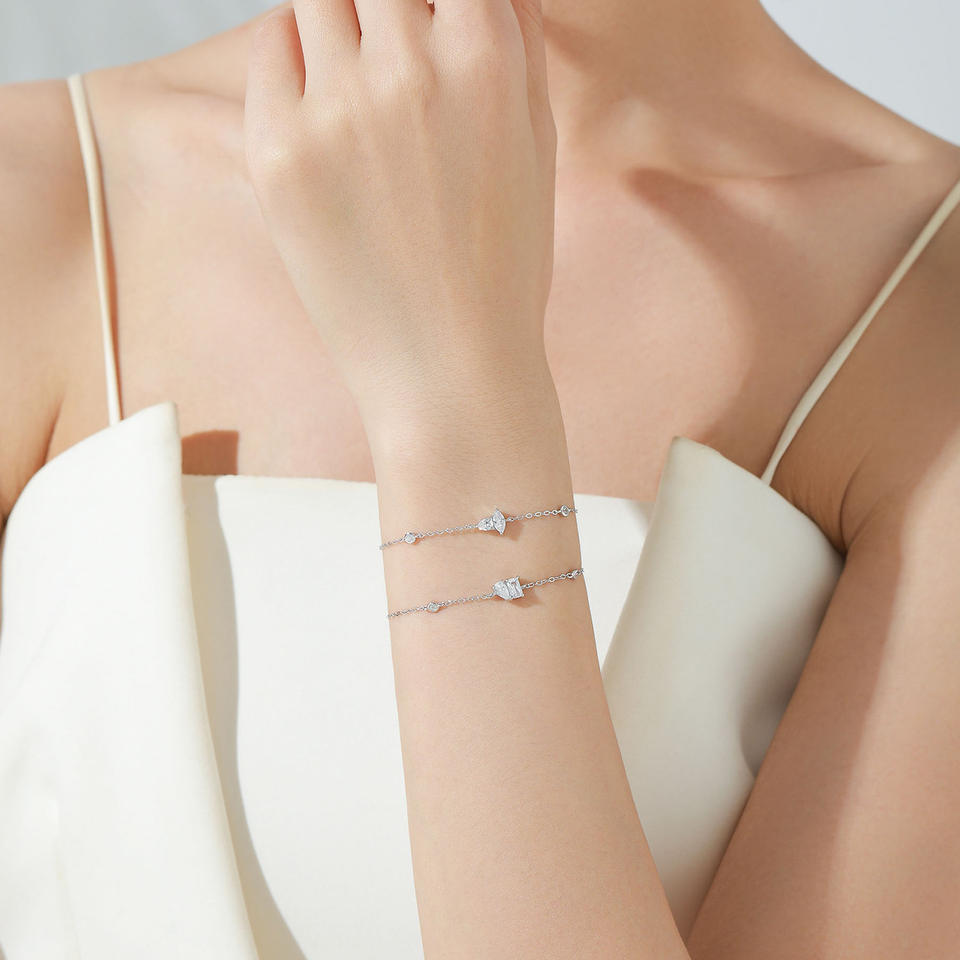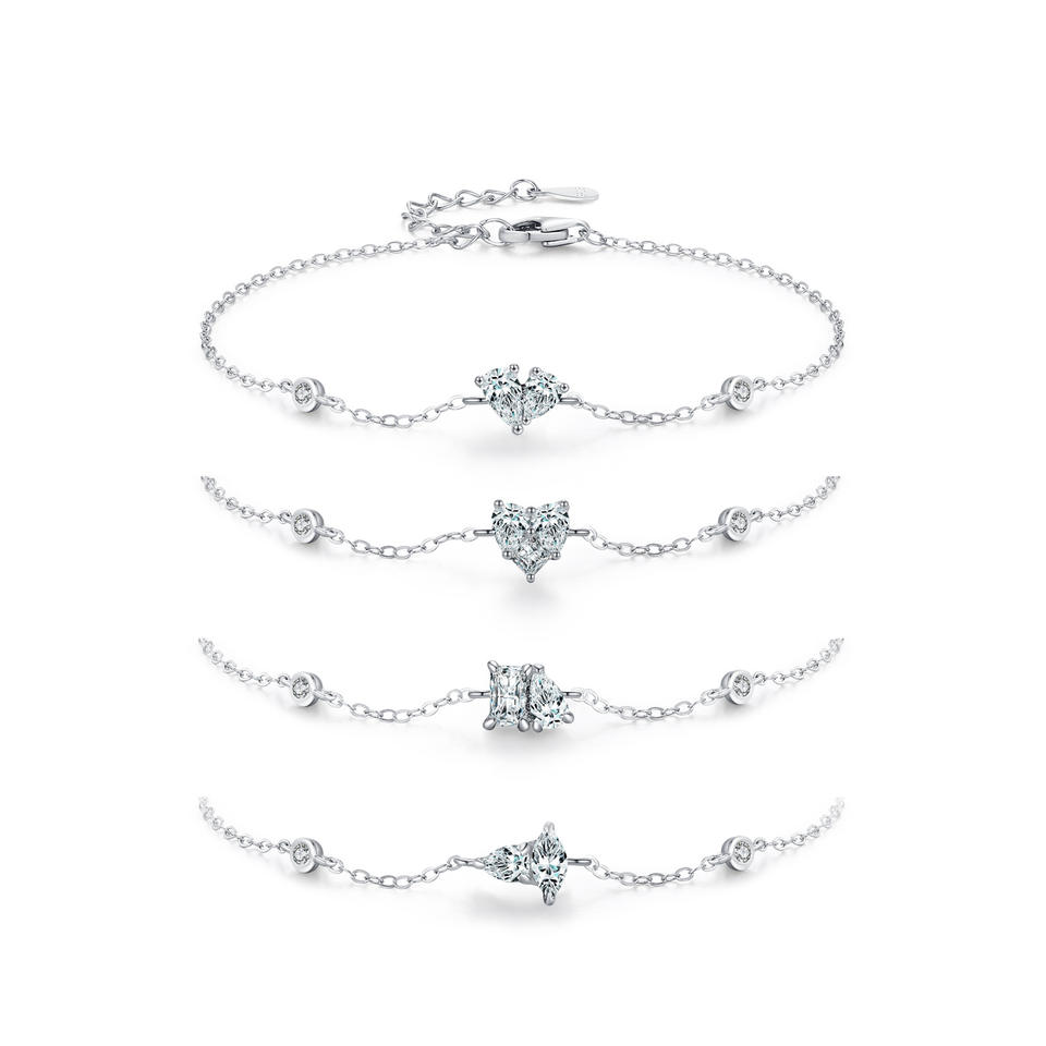 สร้อยข้อมือเงินแท้ S925 ประดับเพชรซิคอน ดีไซน์เรขาคณิตรูปหัวใจเรียบง่าย สำหรับผู้หญิง ของขวัญวันวาเลนไทน์ รุ่นทองแดงปรับแต่งได้