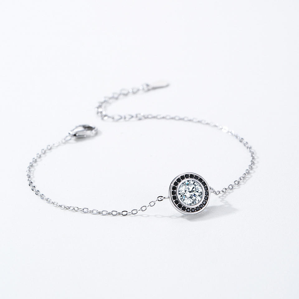 สร้อยข้อมือเงินแท้ S925 ดีไซน์เรียบหรู ประดับด้วยเพทายสีดำและสีขาว สำหรับผู้หญิง รุ่นทองแดงปรับแต่งได้