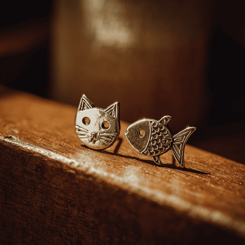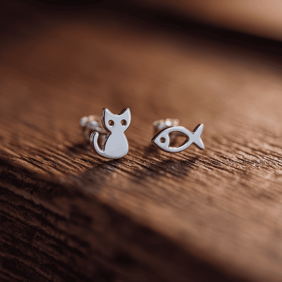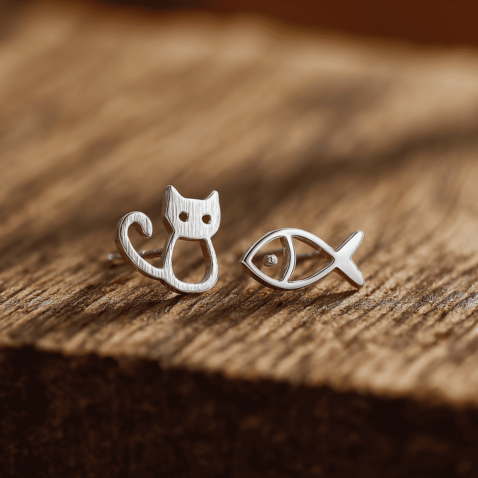 ต่างหูไม่สมมาตรรูปปลาแมวคนรักสัตว์ S999เครื่องประดับเงินสเตอร์ลิง OEM ODM