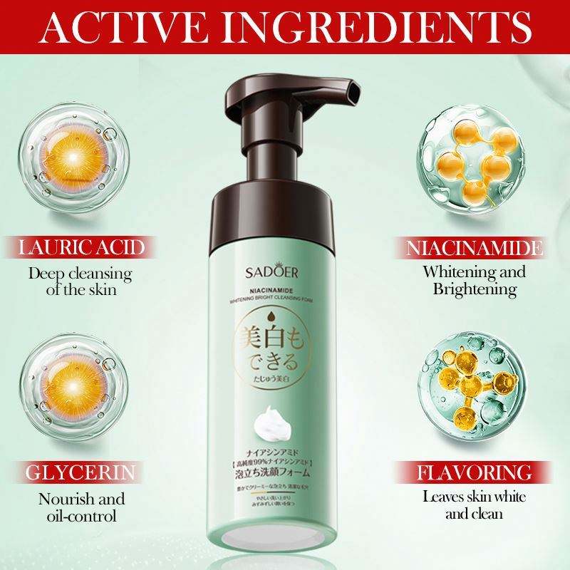 SADOER ผลิตภัณฑ์ทำความสะอาดผิวหน้าสูตรนิโคตินาไมด์ ช่วยให้ผิวขาวกระจ่างใส ขจัดสิ่งสกปรก ทำความสะอาดผิวหน้าอย่างล้ำลึก