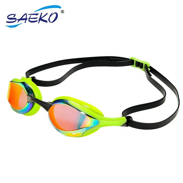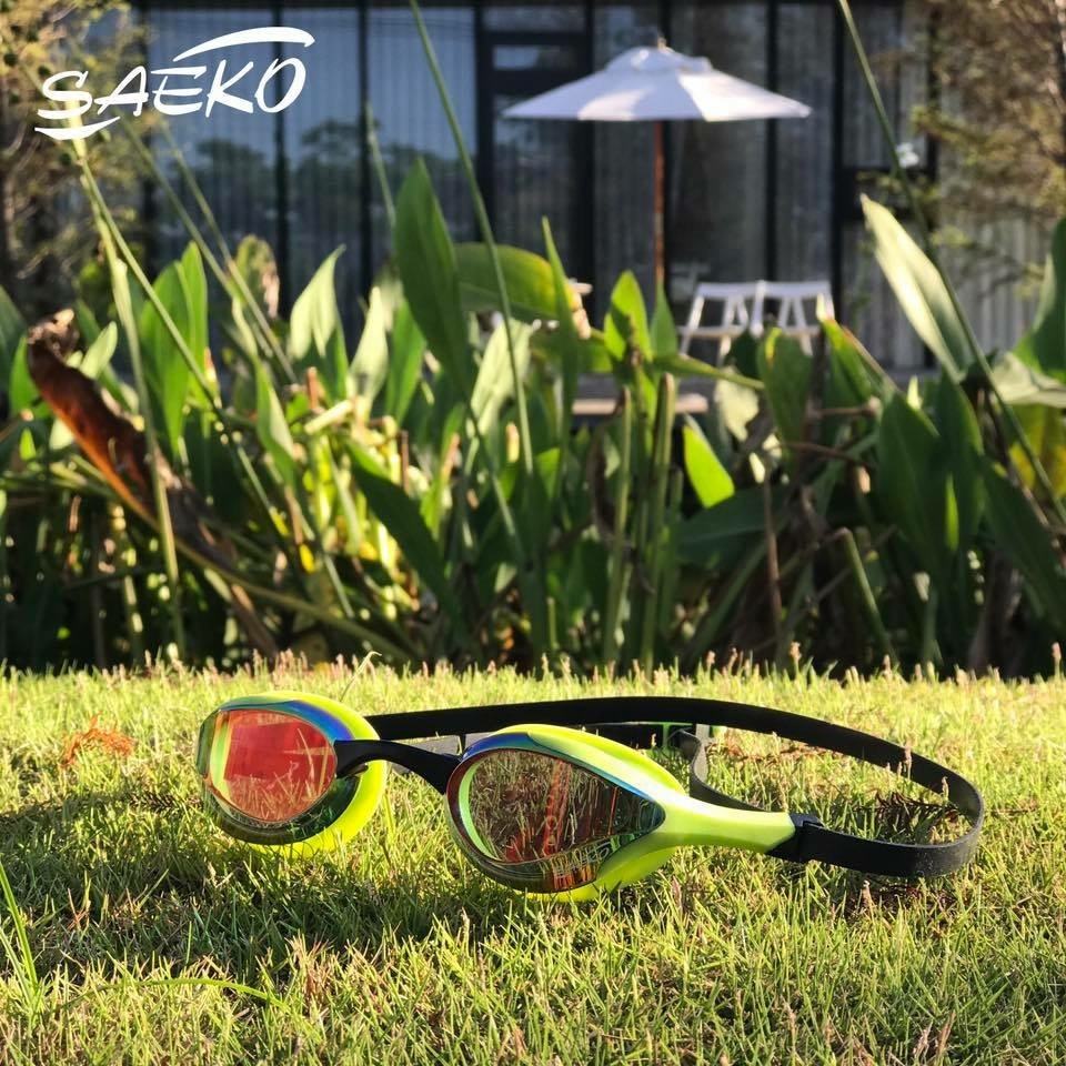 SAEKO Mirror Coated Polycarbonate UV CE Certified Waterproof Swimming Goggles Anti-Fog Eye Protection Case for Open Water Indoor