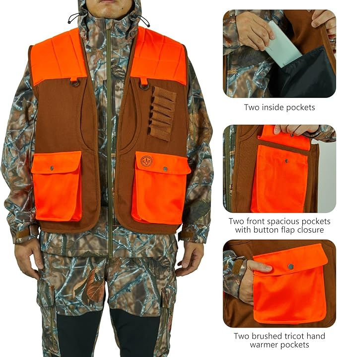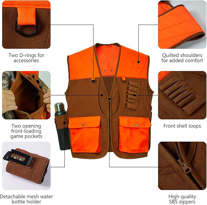 เสื้อกั๊กสำหรับล่าสัตว์ SAFA SPORTS ผลิตจากโพลีเอสเตอร์ ทนทาน เหมาะสำหรับการล่าสัตว์บนพื้นที่ขรุขระ พร้อมกระเป๋าใส่ของสำหรับล่าสัตว์ปีกและสัตว์บนที่สูง พร้อมบริการ