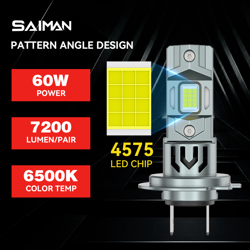 Saiman หลอดไฟ LED ติดรถยนต์7200LM 60W, หลอดไฟอัตโนมัติไร้สาย1:1ปลั๊กเล่น H7ไม่มีสัญญาณรบกวนวิทยุหลอดไฟหน้า LED Matiz CSP