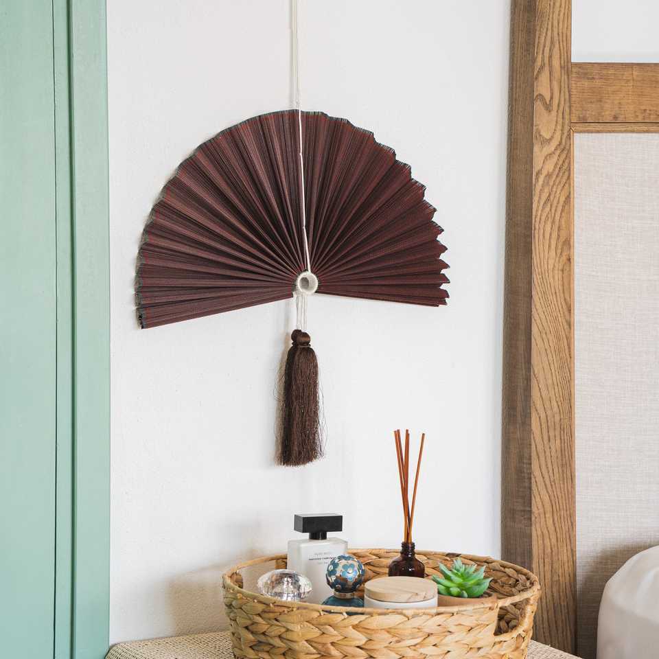 พัดลมแขวนผนัง30% ไม้ไผ่สีแดงเข้มพัดลมตกแต่งผนังหลายขนาด | พัดลมไม้ไผ่ขนาดใหญ่สำหรับ Boho แขวนหัวเตียงห้องนอน