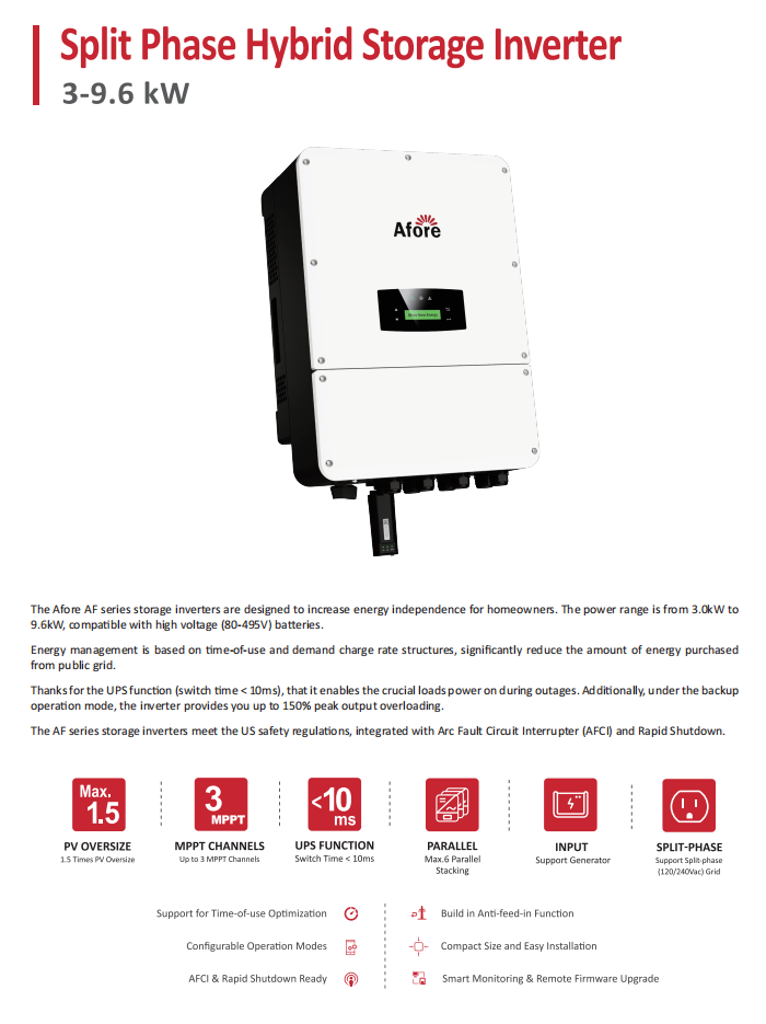 ขายข้าง3/3.6/4/5/6/7/8/9.6KW แยกเฟส AF3-9.6K-DH เรารุ่น120/240V IP65แรงดันสูงการจัดเก็บพลังงานแสงอาทิตย์ไฮบริดคู่