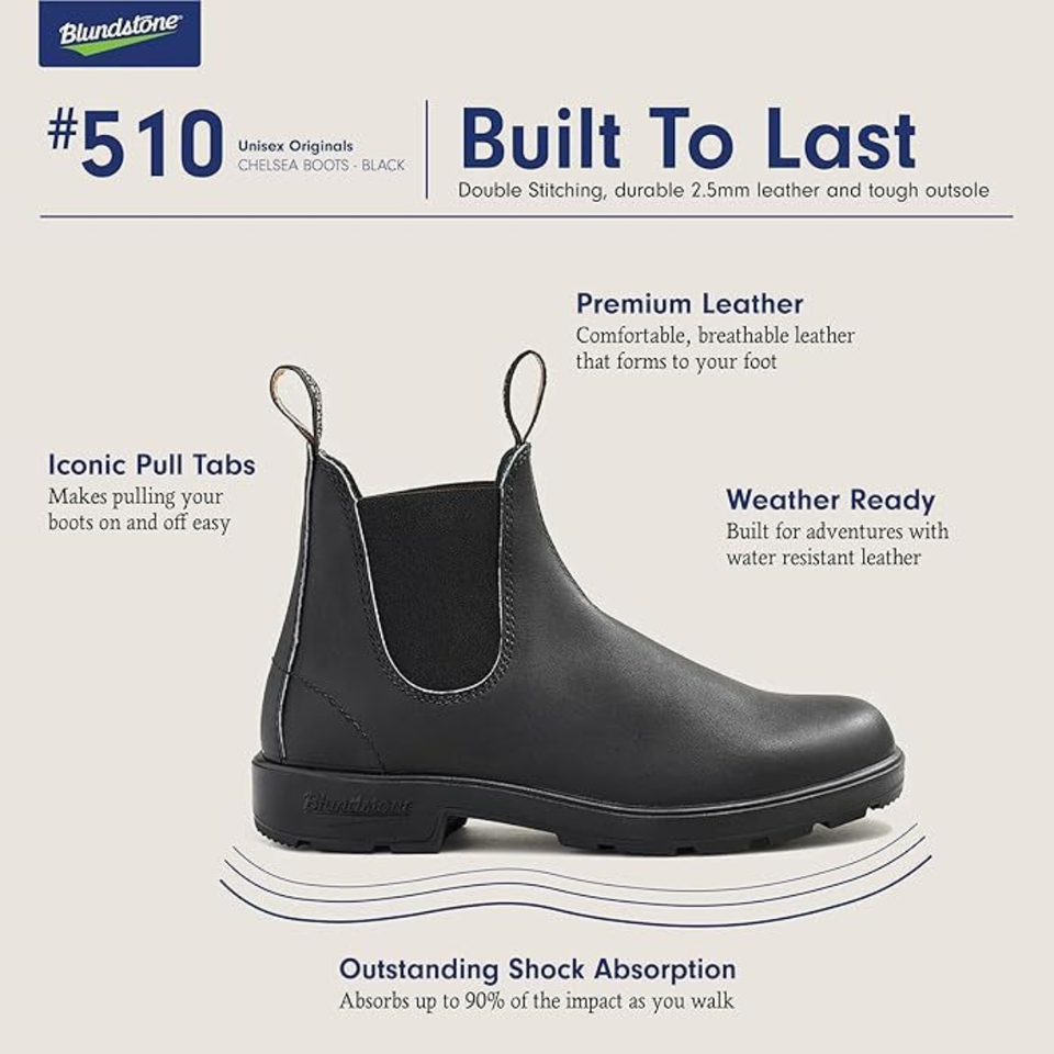 Blundstone รองเท้าบูทผู้หญิงสีดำกันน้ำเชลซี, BS510089 UK511ใส่ได้ทั้งชายและหญิง