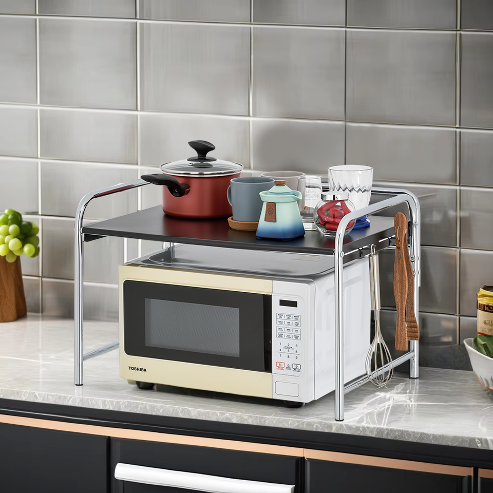 ชั้นวางของในบ้านไมโครเวฟแบบขยายได้ทำเองเฟอร์นิเจอร์จัดเก็บของในบ้านจากไต้หวัน