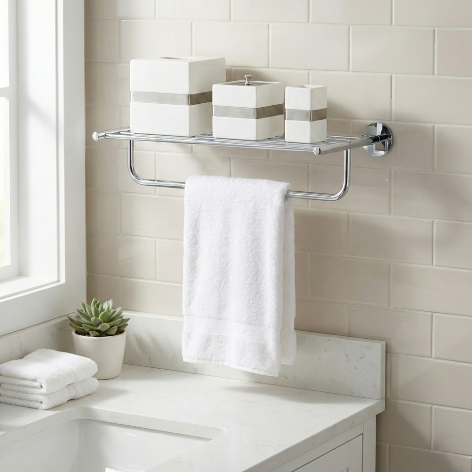 ชั้นวางอุปกรณ์จัดเก็บของในบ้าน,ชั้นวางจัดระเบียบห้องน้ำแบบติดผนังทำจากโลหะใช้ในบ้านแบบ DIY จากไต้หวัน
