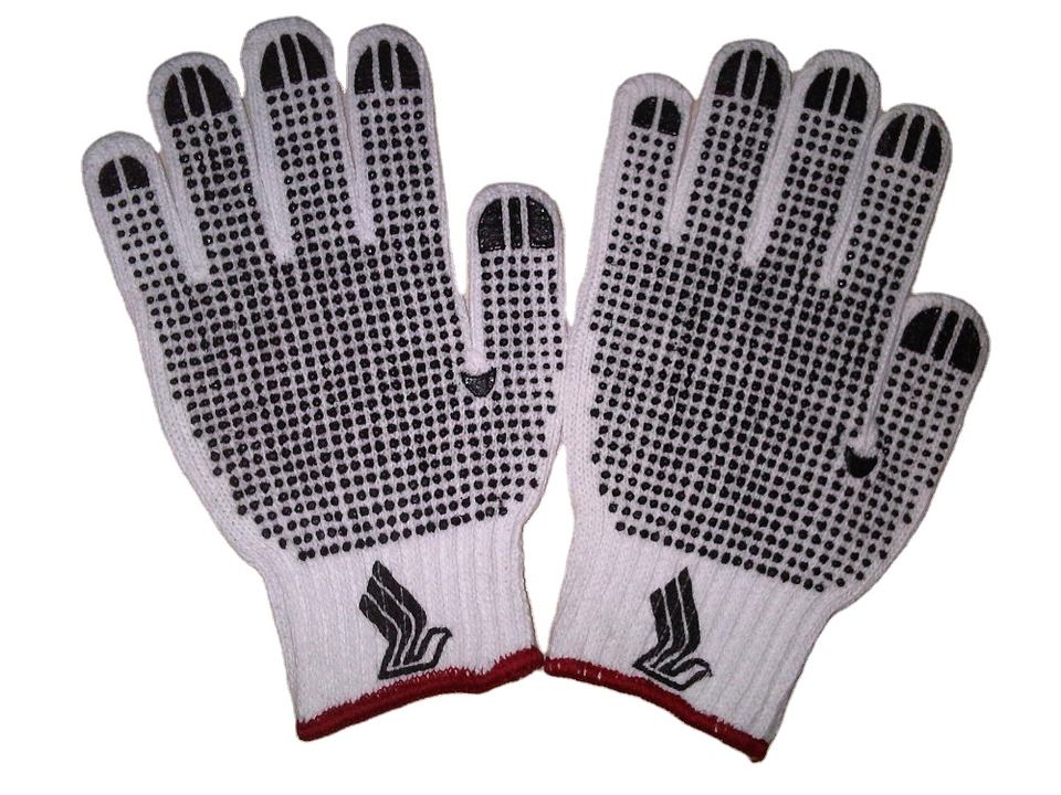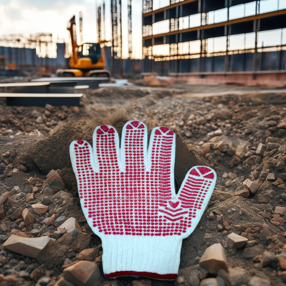 ถุงมือไนลอนป้องกันไฟฟ้าสถิตย์กันลื่นป้องกันไฟฟ้าสถิตย์ทำจากพีวีซีสีขาวมีจุดสีแดง800gms ฟอกขาว