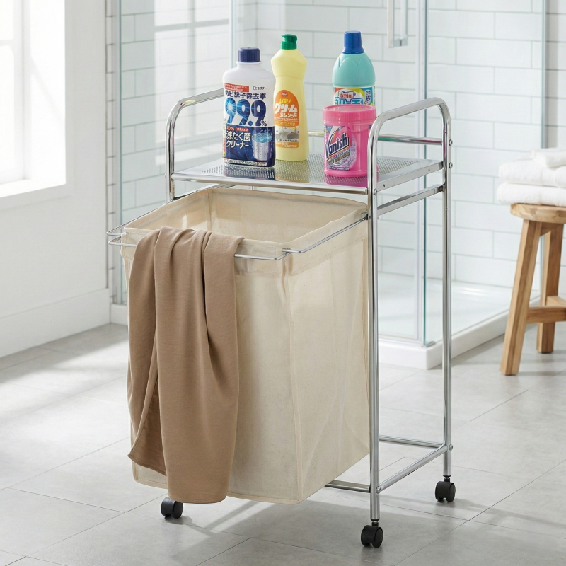 ชุดท่อเหล็กสี่ล้อพับได้แบบมีล้อพับได้ตะกร้าซักผ้าแบบมีล้อ