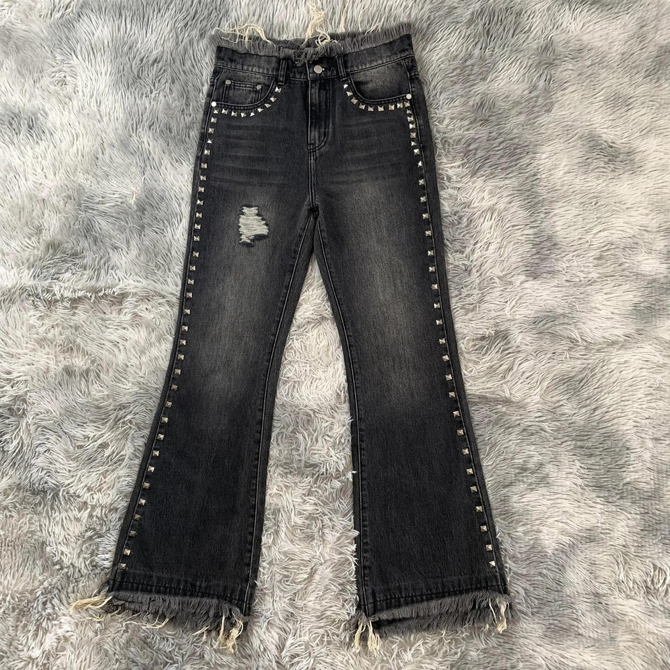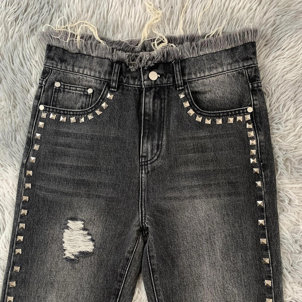 กางเกงยีนส์ผู้หญิง SALVA IMPEX แบบเรียบประดับคริสตัล ล้างสีแบบ Acid Wash ทรงขาด ผ้าฝ้าย 100% ทรงพอดีตัว เป็นมิตรกับสิ่งแวดล้อม