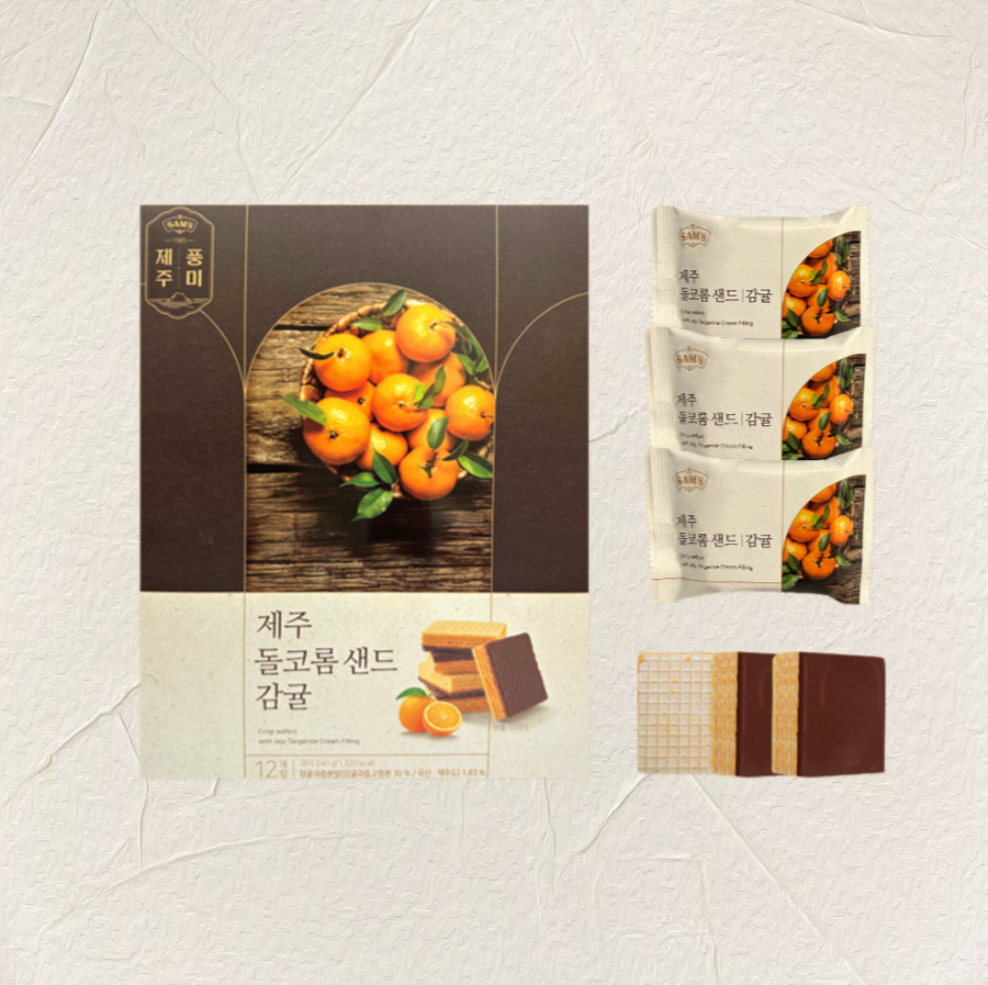 แซมฮ ชีจู ดอลโคโรม แซนด์ออเรนจ์ บิ๊กพาวช์ เวเฟอร์คุกกี้ 12 ชิ้น ของฝากพรีเมียมสำหรับการเดินทาง ขนมกรุบกรอบ เครื่องดื่มแบบแพ็คใหญ่