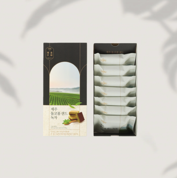 ซามะ พรีเมียม กรีนที เจจู โดลโครอม แซนด์ เวเฟอร์ 12 ชิ้น ของฝากท่องเที่ยว ขนมหวานเพื่อความงาม ของว่างช่วงดื่มชา ขายส่งจำนวนมาก