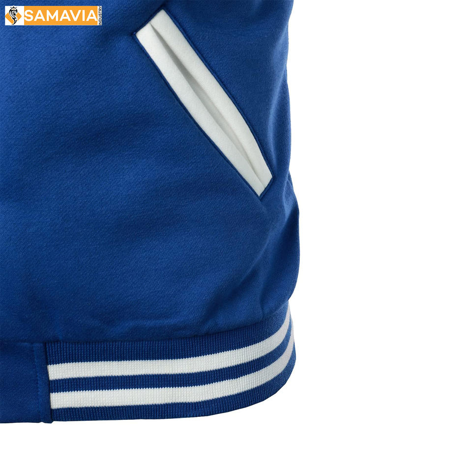 Samavia เสื้อแจ็กเก็ตเบสบอลแขนเสื้อทีมออกแบบได้เองสำหรับผู้ชายสไตล์เลตเทอร์แมนสำหรับนักศึกษา