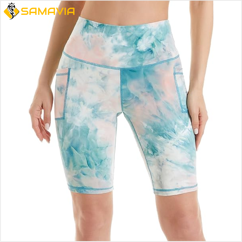 Samavia กางเกงขาสั้นเอวสูงสำหรับผู้หญิงกางเกงเลกกิ้งออกกำลังกายยิมผ้าสแปนเด็กซ์มีกระเป๋า