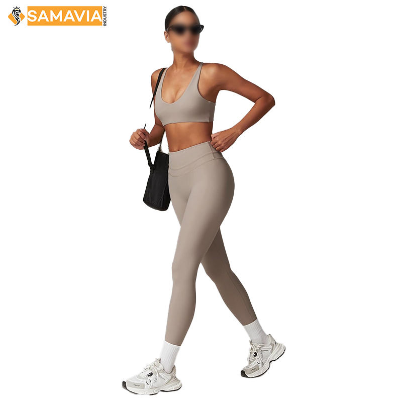 Samavia ชุดออกกำลังระดับพรีเมี่ยมสำหรับผู้หญิง, เลกกิ้งยาวเต็มตัวและบราสายไขว้ด้านหลังเสื้อผ้าใส่เล่นโยคะ