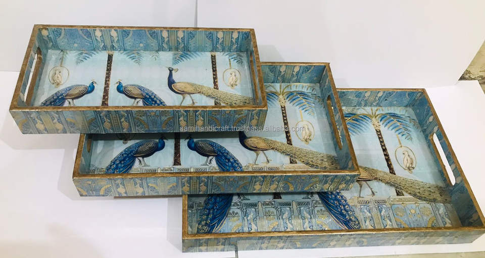 ถาดเสิร์ฟไม้เคลือบเงา SAMI HANDICRAFTS ขนาดสั่งทำได้ ดีไซน์ร้านอาหาร วาดลายด้วยมือ ใช้กับเครื่องล้างจานและไมโครเวฟได้ เหมาะสำหรับใช้ในบ้าน