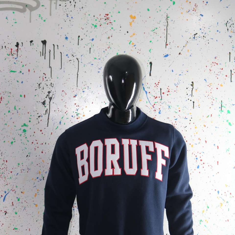 เสื้อสเวตเชิ้ตสีน้ำเงินกรมท่า BORUFF ผ้าฝ้าย 100% ปักลายสีขาว รักษ์โลก ทรงโอเวอร์ไซส์ สำหรับฤดูหนาว ผ้ากำมะหยี่ย้อมสีพื้น แบบสปอร์ต