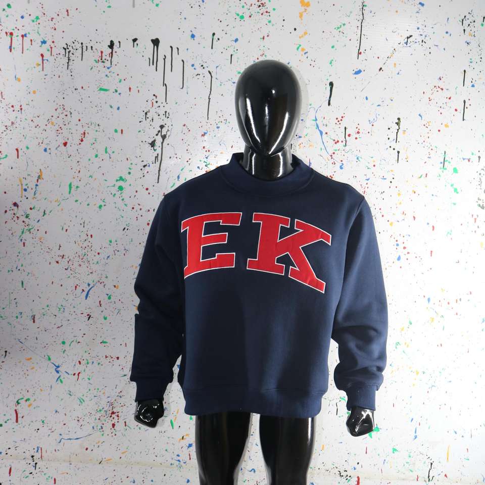 เสื้อสเวตเชิ้ตคอเต่าสีน้ำเงินกรมท่า EK ปักลายสีแดง เสื้อสเวตเชิ้ตคอกว้าง CLUSH SPORTS