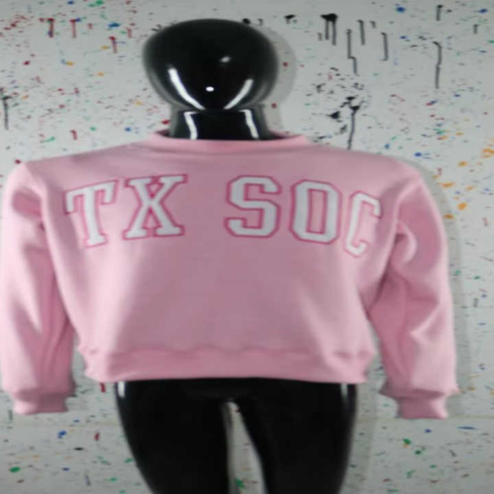 เสื้อสเวตเชิ้ตคอเต่า TX SOC สีชมพู ผ้าฝ้าย 100% สีขาว ปักลาย аппліке คอเสื้อกว้าง ยี่ห้อ CLUSH SPORTS