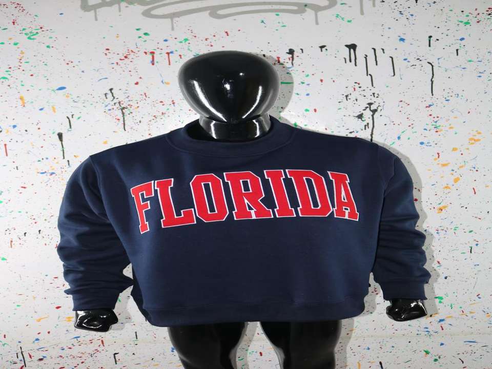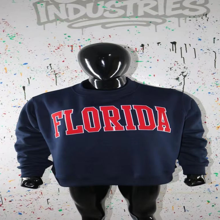 เสื้อสเวตเชิ้ตคอเต่าสีน้ำเงินฟลอริดา 100% ปักลายสีแดง เสื้อสเวตเชิ้ตคอกว้าง CLUSH SPORTS