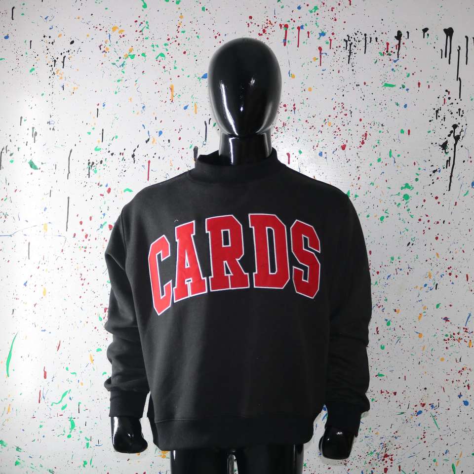 เสื้อสเวตเชิ้ตคอเต่าสีดำ CARDS BLACK ปักลายสีแดง 100% ด้วยด้ายคุณภาพสูง