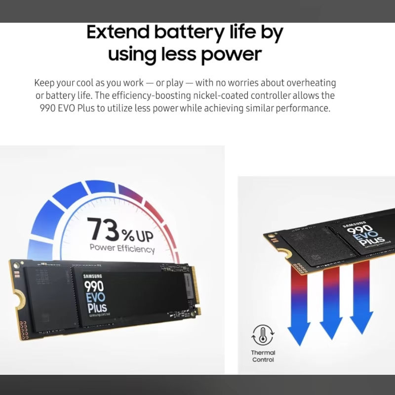Samsung SSD NVMe M2 2TB 990 EVO PLUS ฮาร์ดดิสก์ภายใน1TB PCIe Gen 4.0x4 M.2 2280 TLC ฮาร์ดไดรฟ์ SSD สำหรับเดสก์ท็อป